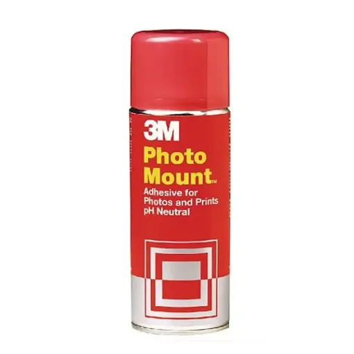 3M PhotoMount Adhesive is a strong, clear professional grade adhesive developed especially for mounting photos quickly, easily, and permanently! It's pH neutral, non-yellowing with good resistance to both high temperature and UV.