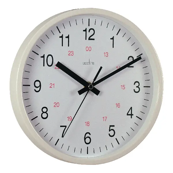 White Acctim Wall Clock 14 inch.Big and easy to read clock for home, office or school. 12 or 24 hour face.