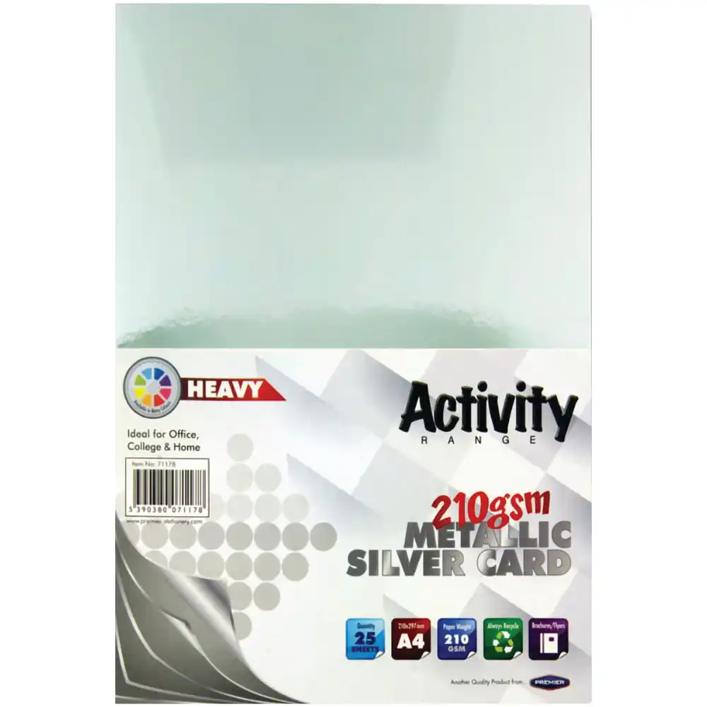 Premier Activity A4 210gsm Card 25 Sheets Silver
