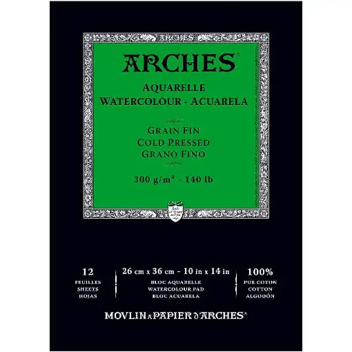 Elements Watercolour Pad, 12 Sheets of cold pressed, bright white 300gms watercolour paper. Ideal for watercolour painting on the move and in the studio. Paper made in the Netherlands.