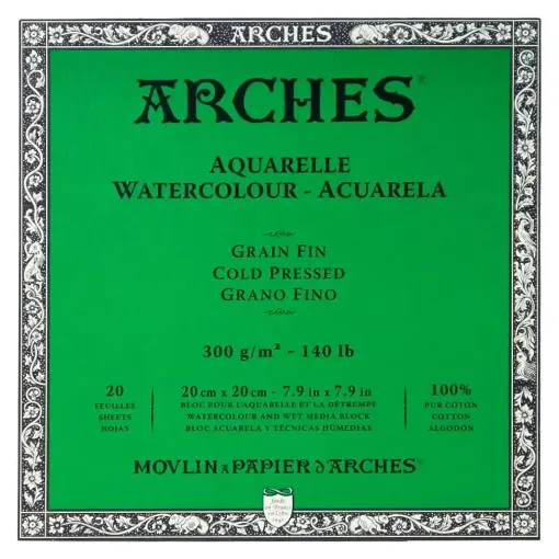The Arches Watercolour Paper Block in an 8x8 inch size offers a convenient and portable solution for watercolor artists. Its cold-pressed texture provides a versatile surface, allowing for smooth washes, fine details, and excellent color blending. With 20 sheets of high-quality, acid-free paper, this block ensures durability and preservation of your artwork, making it a reliable choice for watercolor enthusiasts seeking top-notch results.