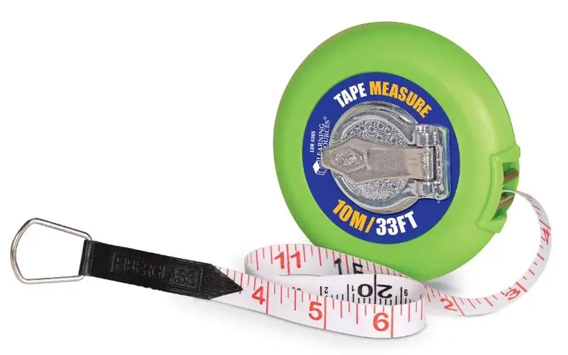 Fiberglass measuring tape is marked in cm and mm on one side and inches on reverse.