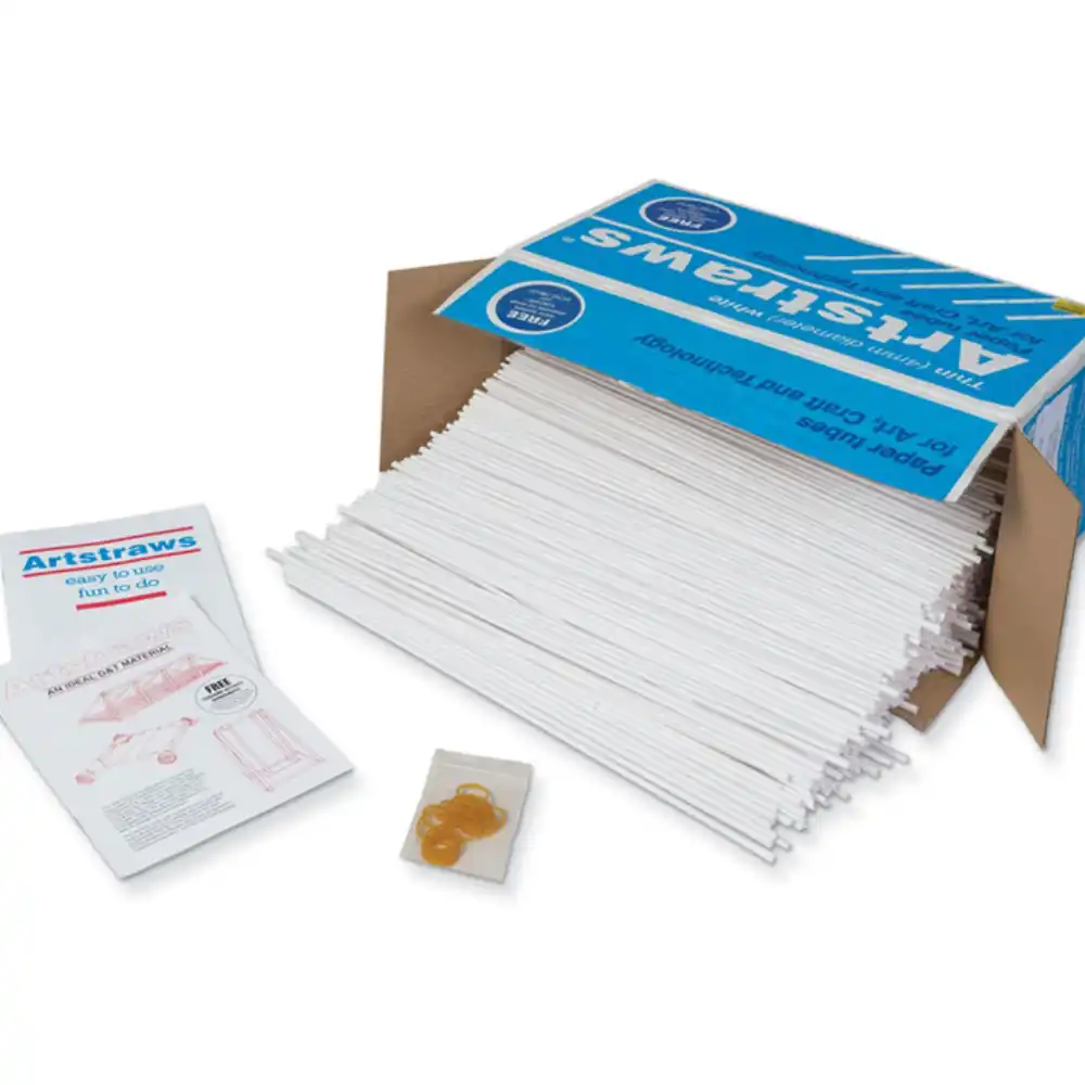 Artstraws are long paper straws used to build, cut, curl, stick, thread, plait, and weave! They are a versatile medium used by students of all ages, from Key Stage 1 through to Degree Level, particularly in the D & T curriculum. Help to develop the concept of dimensions, architectural designs, build bridges and understand simple physical states/laws.