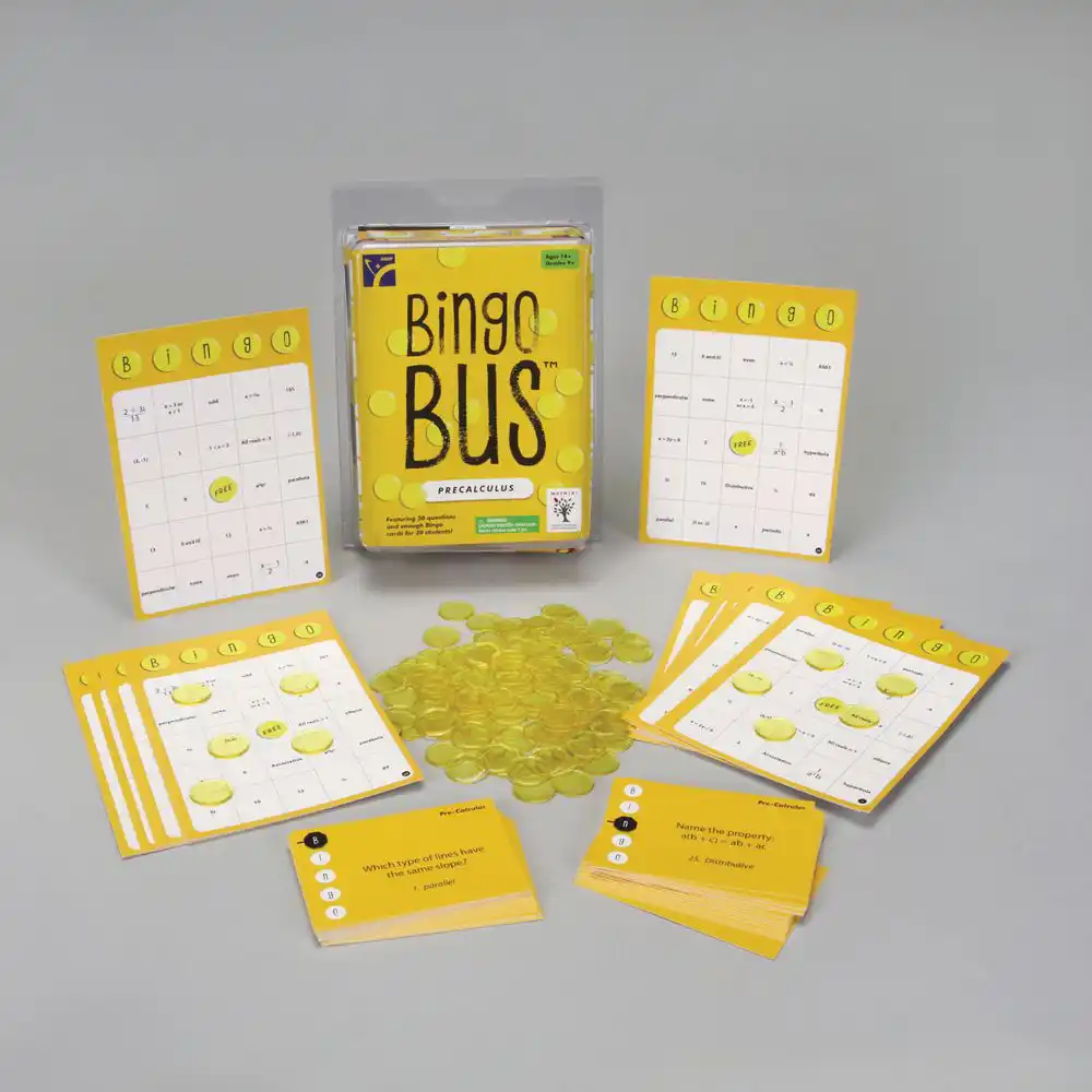 Get on Board the Bingo Bus™! The well-loved game of BINGO is transformed into fun topics for Math. Each set includes 30 Bingo cards and markers.
