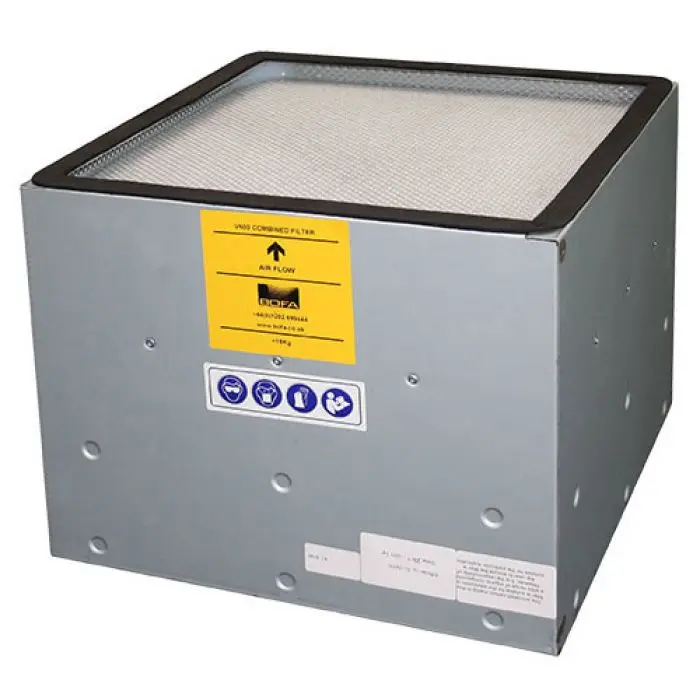 This feature not only guarantees even spacing for full filter coverage between each pleat, but also alleviates the possibility of airflow vibration or collapse. BOFA HEPA filters are tested to filter 99.997% @ 0.3 microns.