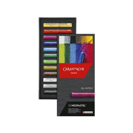 The Caran d'Ache Neopastel Oil Assorted Pack of 12 is a premium selection of oil pastels loved by artists for their vibrant pigments and smooth application. These professional-grade pastels offer excellent coverage and blendability, allowing for the creation of rich and textured artworks.