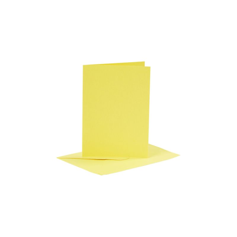 Double blank cards of heavyweight cardboard (250g), having matching paper envelopes (12 g) which has a moisture-gummed envelope closure (wet to close). Each pack contains 6 cards and 6 envelopes excluding "Red Glitter" which includes 4 cards and 4 envelopes. Card size 10,5x15 cm, envelope size 11,5x16,5 cm