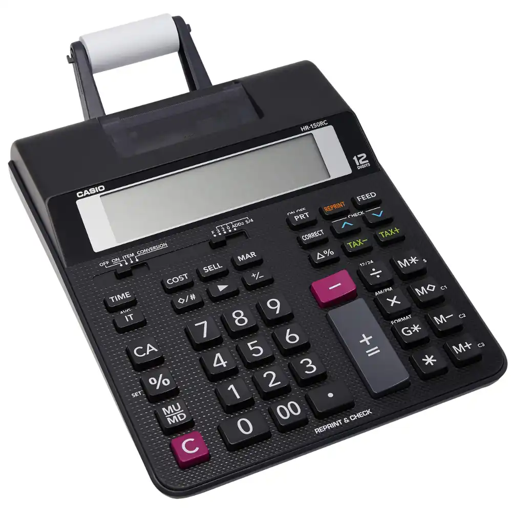 This desktop calculator features a large 12 digit display, has a four button memory function, a percentage & a square root key. It is dual powered solar & replaceable battery. Battery included