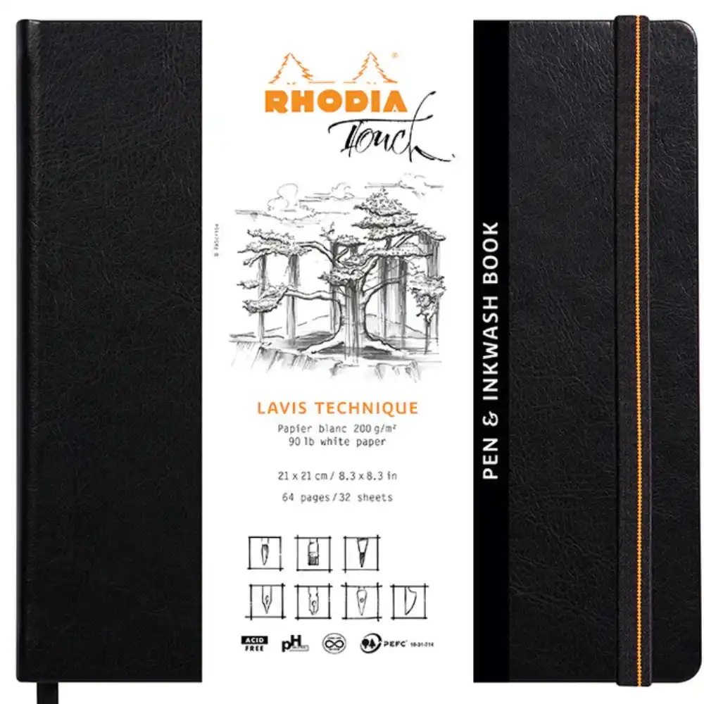 Rhodia Touch Pen & Inkwash notebook. Suitable for all kinds of ink including fountain pen ink, marker pens, brush pens and dip pen calligraphy ink.