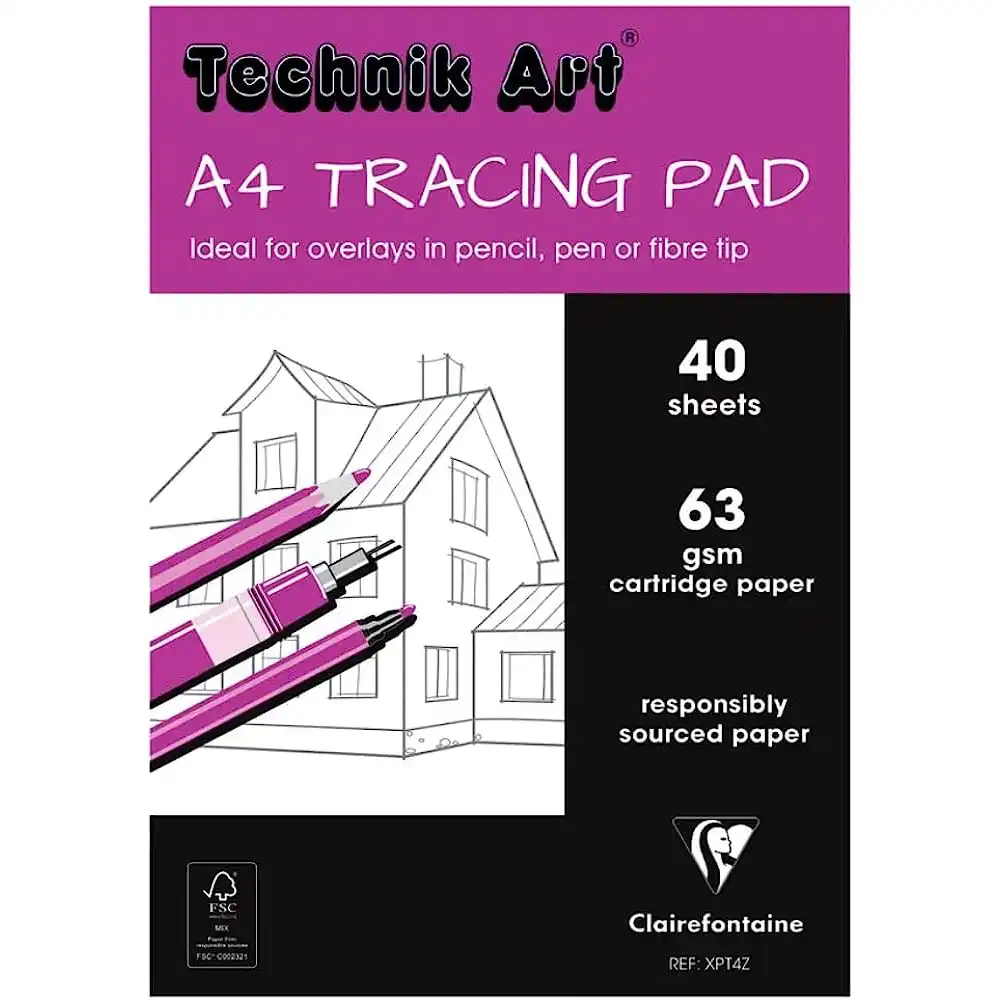The Clairefontaine A4 Technik Tracing Pad is a high-quality tracing pad designed for artists and designers. With its A4 size and 40 sheets, it offers a convenient and versatile platform for tracing and transferring images. The 63gsm paper weight provides a lightweight and translucent surface, allowing for easy tracing and overlaying of designs. Whether you're working with pencils, pens, or markers, this tracing pad offers excellent transparency and smoothness for precise tracing. The Clairefontaine brand ensures exceptional paper quality, making this tracing pad a reliable tool for creating accurate and detailed artwork.