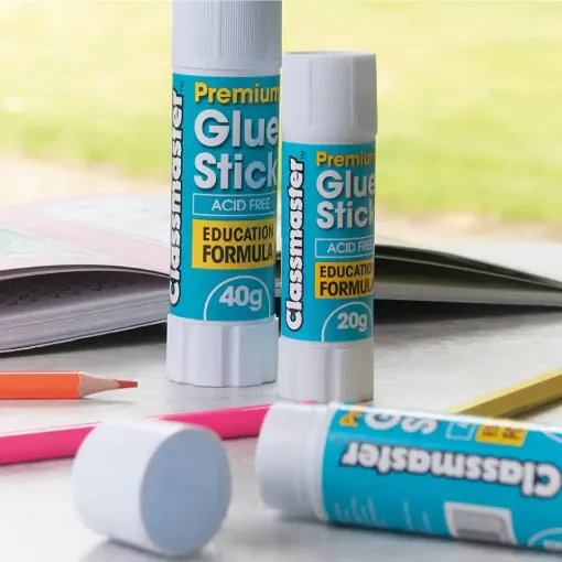 Classmaster's premium glue sticks have been developed specifically for use in schools. The long-lasting PVP educational formula gives these glue sticks a shelf-life 3x longer than those made from standard PVA.
