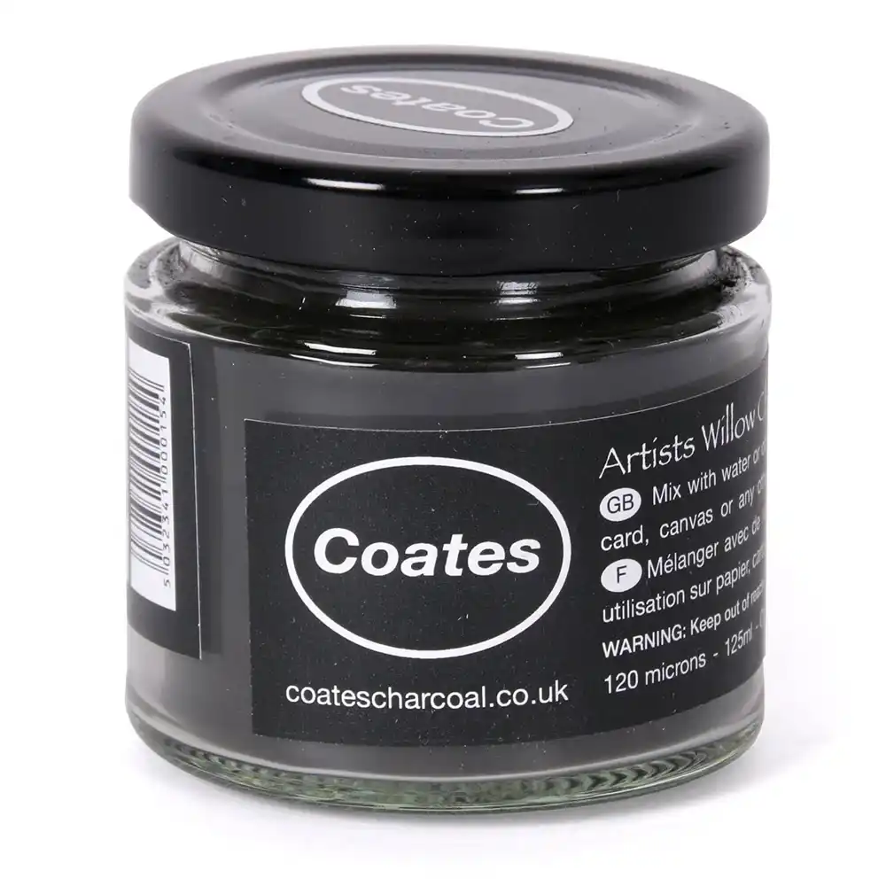 This charcoal powder by Coates is obtained by grinding willow charcoal sticks into a fine (120 microns) powder. It’s ideal for large scale artwork, subtle shading, or mixing with water or paint, and can be applied to any absorbent surface (paper, cardboard, canvas...) with a brush or fingers.