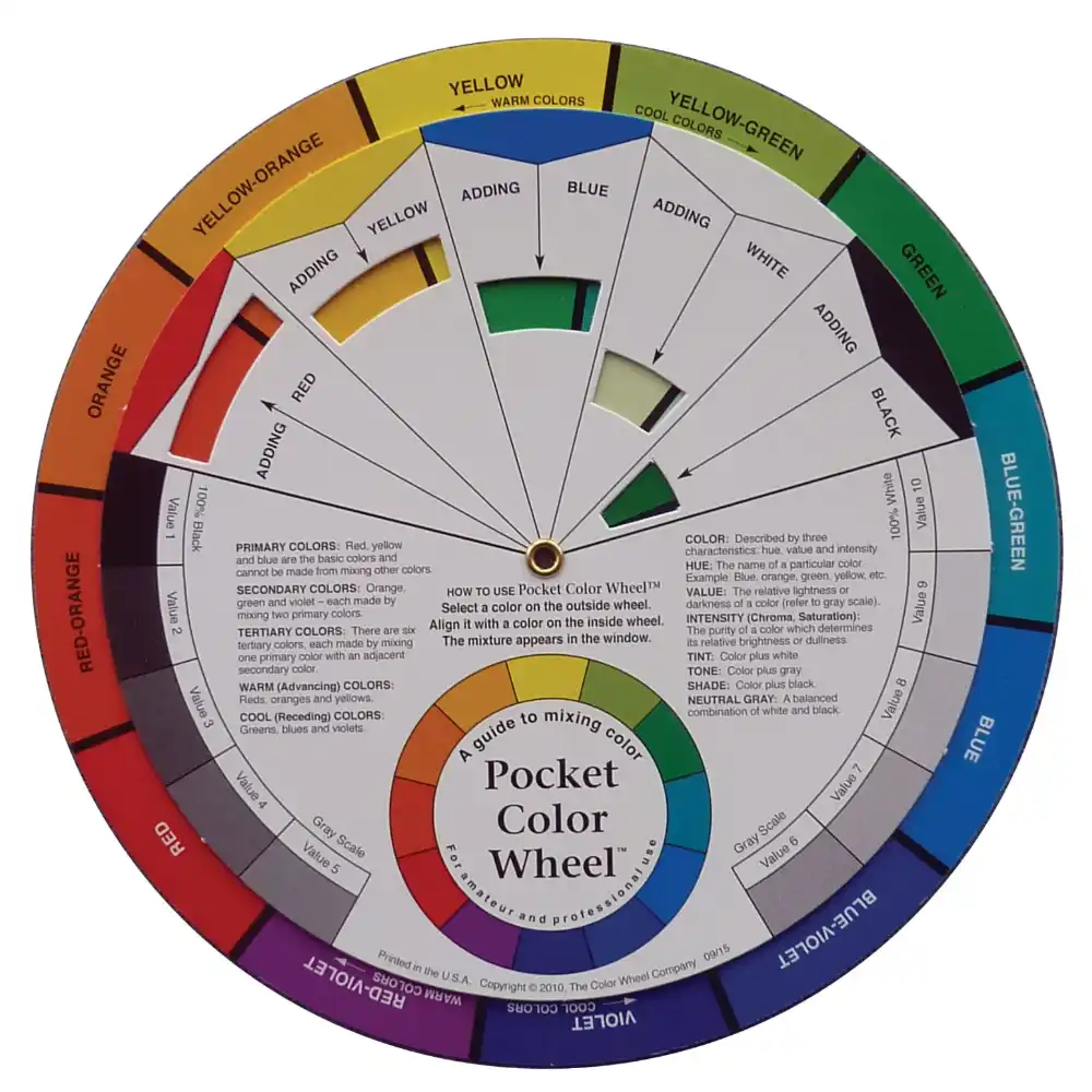 Teaches color relationships by organizing colors in a circle so you can visualize how they relate to each other in a compact, convenient size!. Diameter 5-1/8" (13.0 cm)