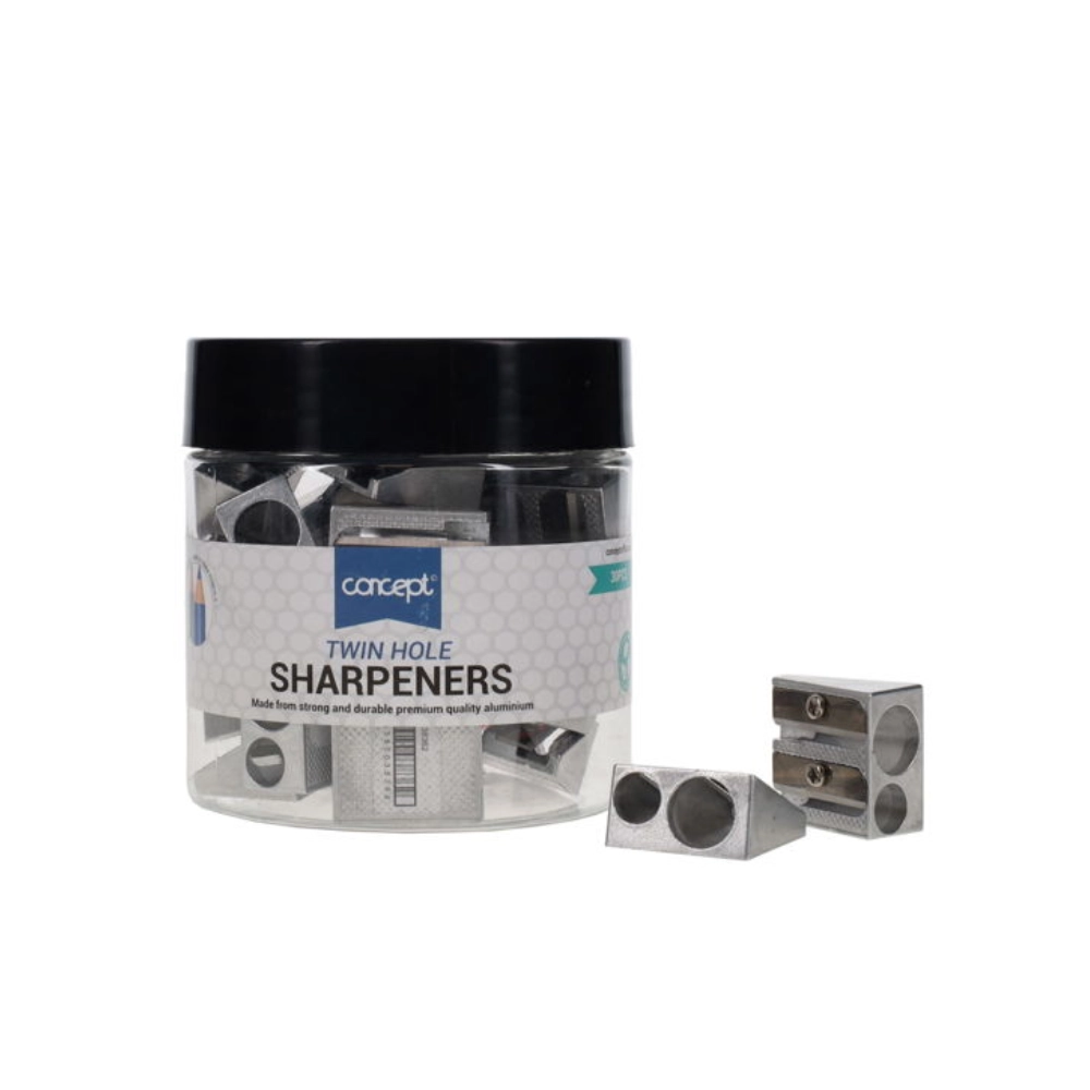 Efficiently sharpen pencils of varying sizes with the Arda Twin Hole Pencil Sharpener. Featuring two separate sharpening holes to accommodate both standard and jumbo pencils, this sharpener ensures a fine point with minimal effort. Its durable construction and easy-to-clean design make it an essential tool for students, artists, and professionals alike.