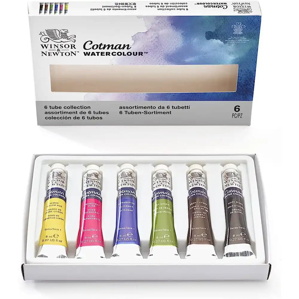 This set contains 6 x 8ml tubes of Cotman Watercolour, offering a perfect starter palette for the medium.