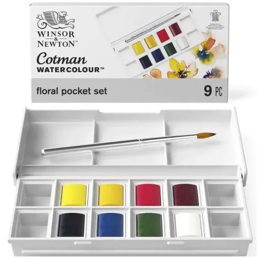Cotman Watercolour Pocket Set - Floral. Paint skyscape works with 8 Cotman Watercolour carefully curated by professional Artists. Made with quality fine art pigments in a pocket-sized set.