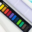 The Create Watercolour Tin Tablet Set of 12 is a versatile and portable painting solution for artists of all skill levels. Housed in a sleek, durable tin, this set includes 12 vibrant and richly pigmented watercolor tablets.