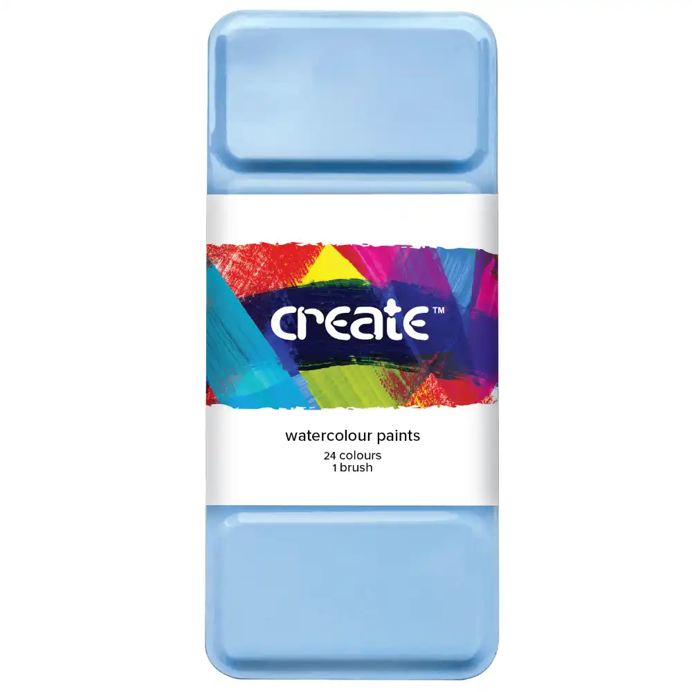Create Watercolour Tin Tablet Set with Brush 24 Colours