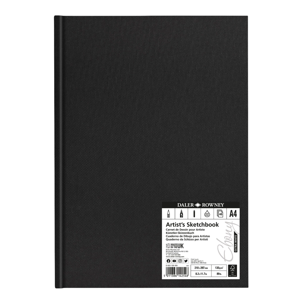 The Daler Rowney Ebony Sketchbook Extra White Hardback in A4 portrait format is a premium choice for artists seeking crisp, clean paper. Featuring 46 sheets of 130gsm extra white paper, this sketchbook provides an ideal surface for detailed sketches, line work, and light watercolor applications. The durable hardback cover ensures your artwork stays protected, making it perfect for use in the studio or while traveling. Its professional-quality paper and sturdy design make it an essential addition to any artist's toolkit.