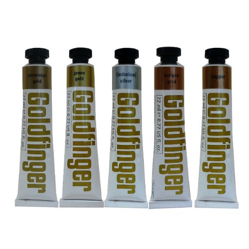 Goldfinger, a unique product developed by Daler-Rowney, is an all-purpose, rub-on metallic paste available in five finishes. It can be used for anything from the restoration of antiques to gilding picture frames; or for stencilling, plaster, clay or wood decoration, mouldings for imitation ormolu furniture, textiles, leather, plastics, model making and greeting cards.