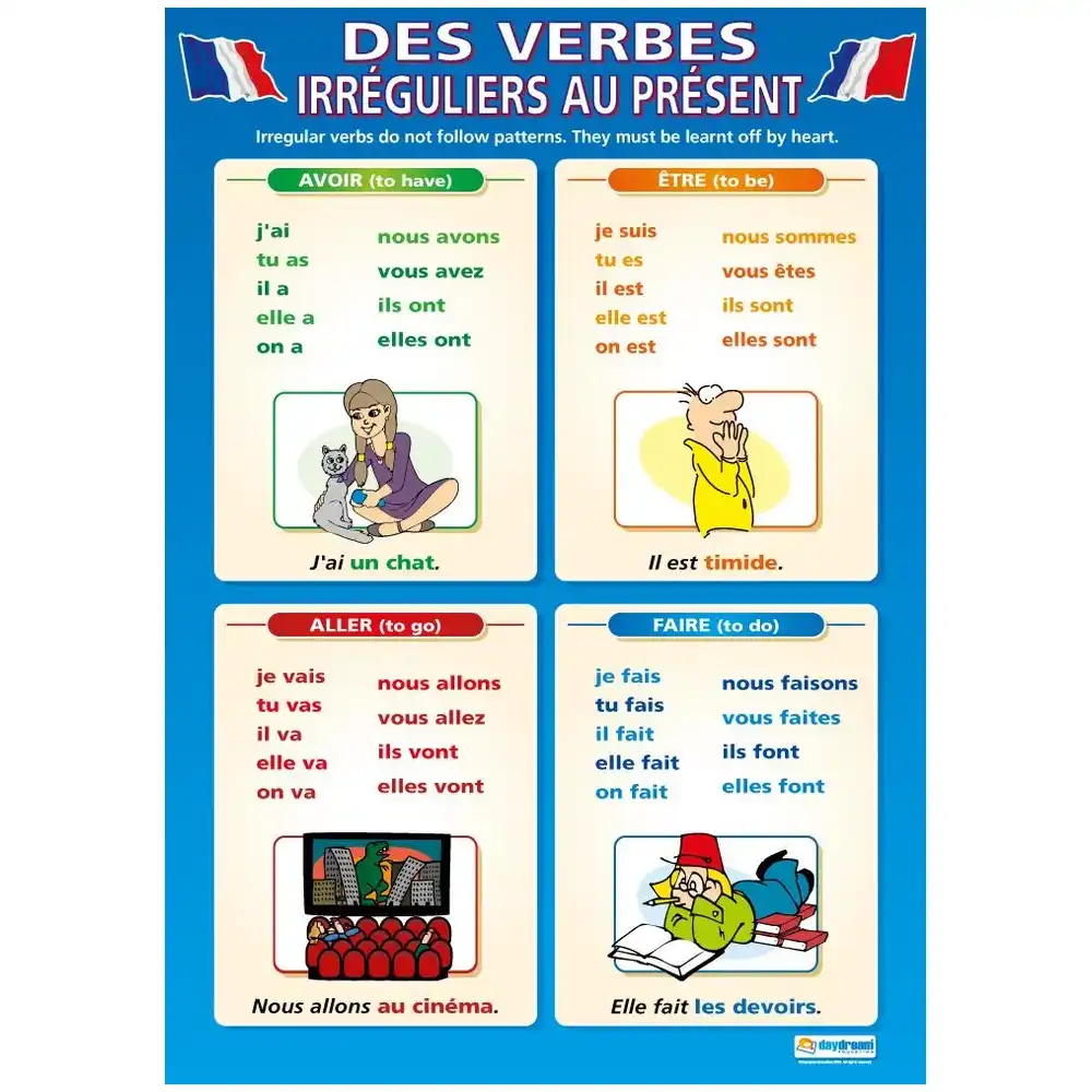 The Des Verbes Reguliers au Present Wall Chart is ideal for classroom walls and school hallways. The large A1 size (840mm x 594mm) makes the bright and informative chart highly readable from a distance, complementing every learning environment.