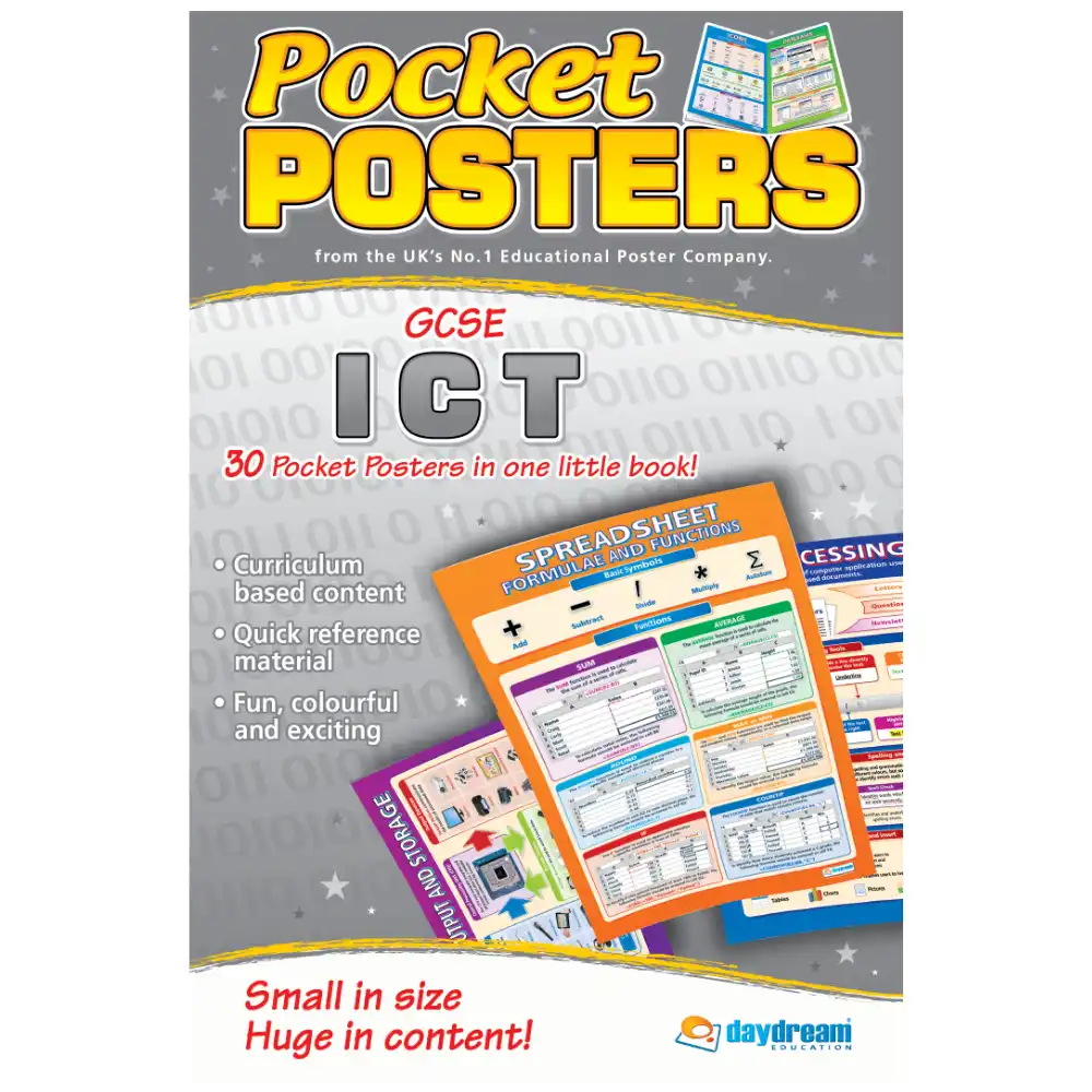 ICT Pocket Posters are a simple, affordable and handy pocket-sized reference book that will help with homework assignments, class activities and revision. The colourful and informative books contain 25 of Daydream Education's award-winning posters that highlight key curriculum topics in a bright and colourful format.