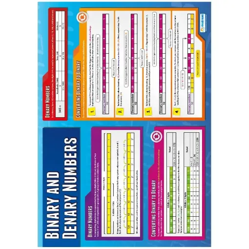Our Binary and Denary Numbers Wallchart is a really useful resource for students who are trying to understand how to convert between denary and binary data. The chart simplifies the subject into easy to understand steps.