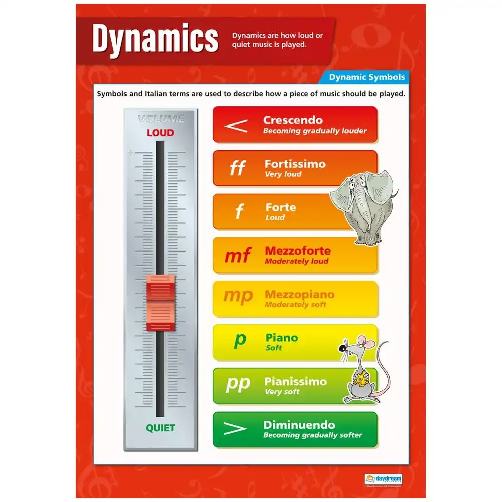 The Dynamics Wall Chart is ideal for classroom walls and school hallways. The large A1 size (840mm x 594mm) makes the bright and informative chart highly readable from a distance, complementing every learning environment.