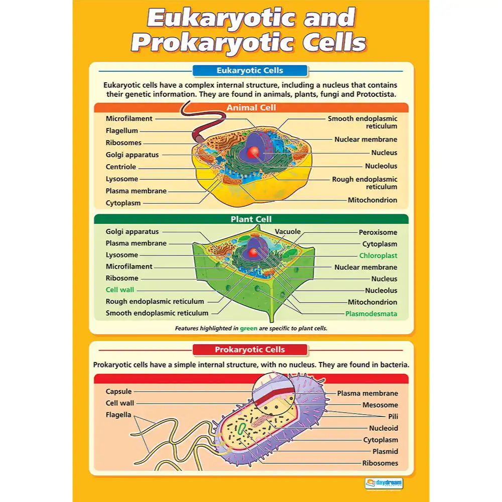 Eukaryotic & Prokaryotic Cells Laminated Wallchart