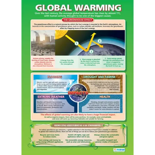 The Greenhouse Effect Wall Chart is ideal for classroom walls and school hallways. The large A1 size (840mm x 594mm) makes the bright and informative chart highly readable from a distance, complementing every learning environment.
