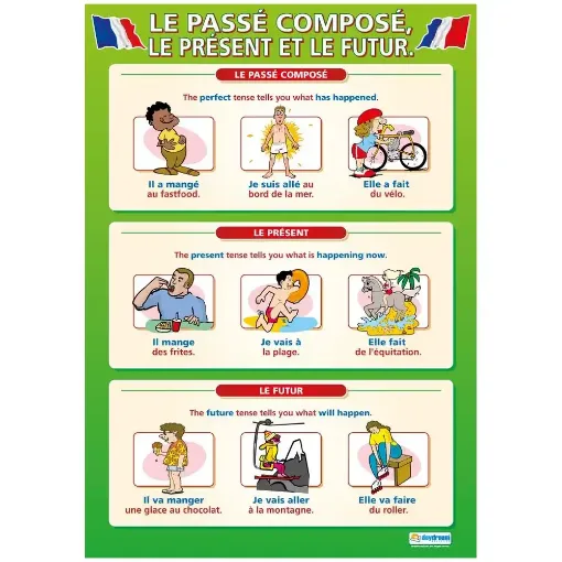 The Le Passe Compose, le Present et le Futur Wall Chart is ideal for classroom walls and school hallways. The large A1 size (840mm x 594mm) makes the bright and informative chart highly readable from a distance, complementing every learning environment.