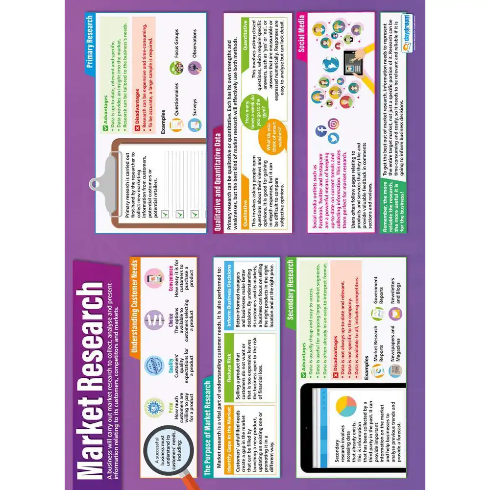 Part of our popular Business range, Daydream' The Market Research Wall Chart is ideal for classroom walls and school hallways. The large A1 size (840mm x 594mm) makes the bright and informative chart highly readable from a distance, complementing every learning environment.