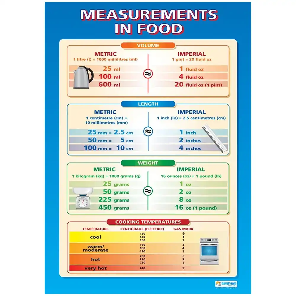 The Measurement poster is ideal for classroom walls and school hallways. The large C2 size (458mm x 648mm) makes the bright and informative chart highly readable from a distance, complementing every learning environment.