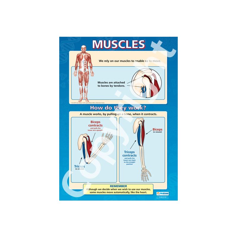 The Muscles Wall Chart is ideal for classroom walls and school hallways. The large A1 size (840mm x 594mm) makes the bright and informative chart highly readable from a distance, complementing every learning environment.