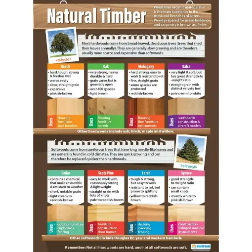 The Wood Wall Chart is ideal for classroom walls and school hallways. The large A1 size (840mmx 594mm) makes the bright and informative chart highly readable from a distance, complementing every learning environment.