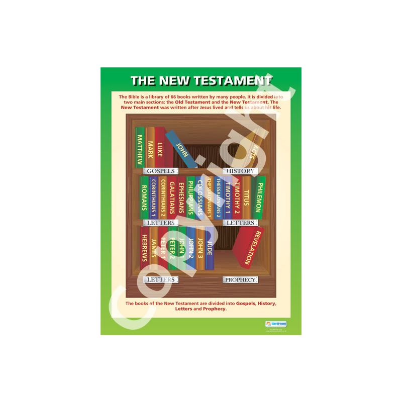 The New Testament ' Wall Chart is ideal for classroom walls and school hallways. The large A1 size (840mm x 594mm) 'makes the bright and informative chart highly readable from a distance, complementing every learning environment.
