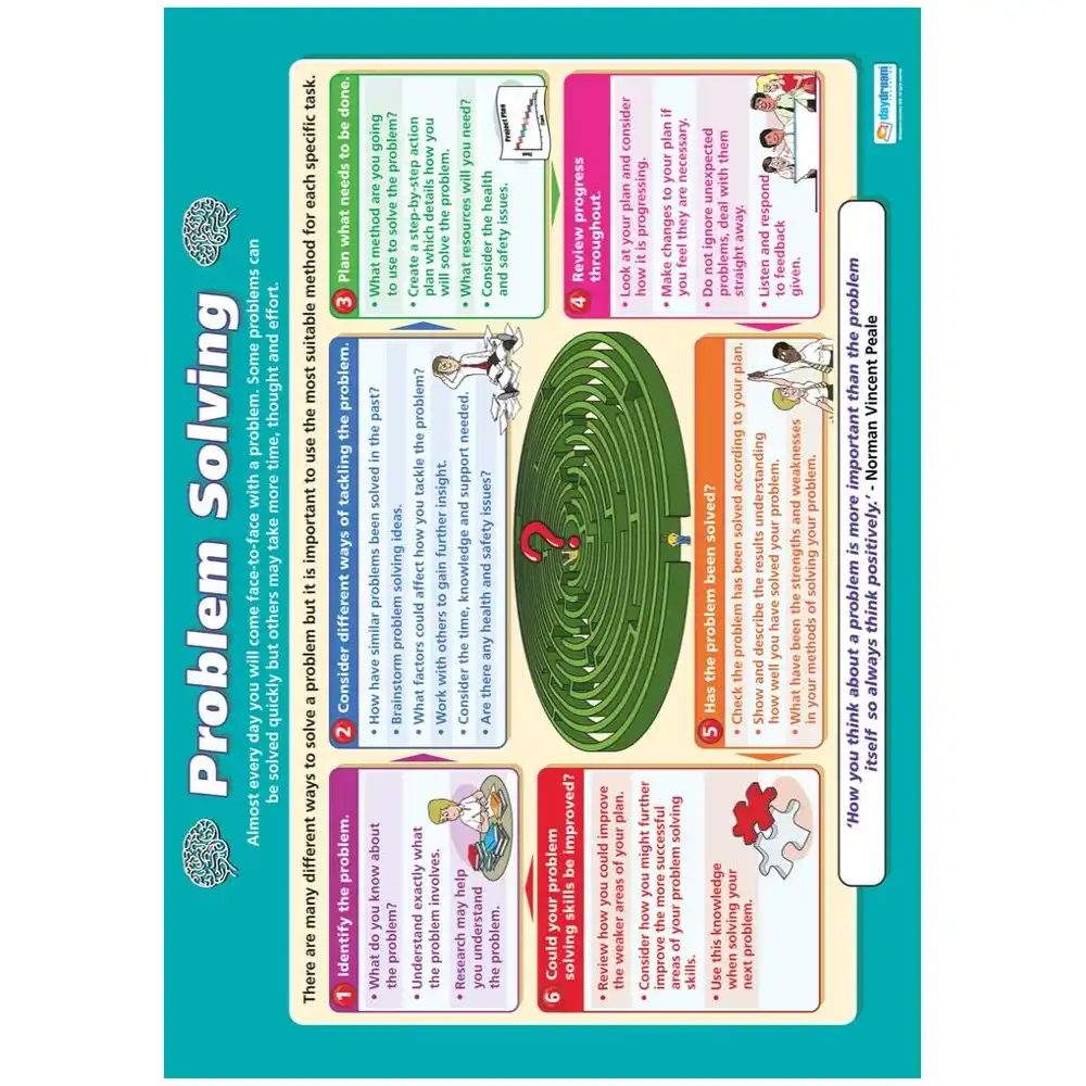 The Problem Solving Wall Chart is ideal for classroom walls and school hallways. The large A1 size (840mm x 594mm) makes the bright and informative chart highly readable from a distance, complementing every learning environment.