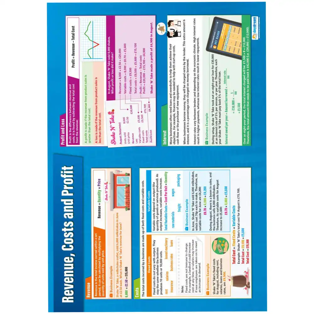 Our Revenue, Costs and Profit poster provides a clear, step-by-step demonstration of how to calculate revenue, costs and profit. Working through calculations in an easy-to-follow business example, this is the ideal learning aid to help GCSE Business pupils crunch numbers with confidence ready for the exams.
