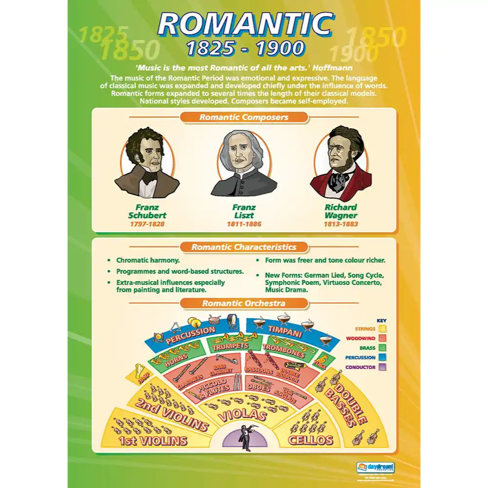 The Baroque poster is ideal for classroom walls and school hallways. The large A1 size makes the bright and informative chart highly readable from a distance, complementing every learning environment.