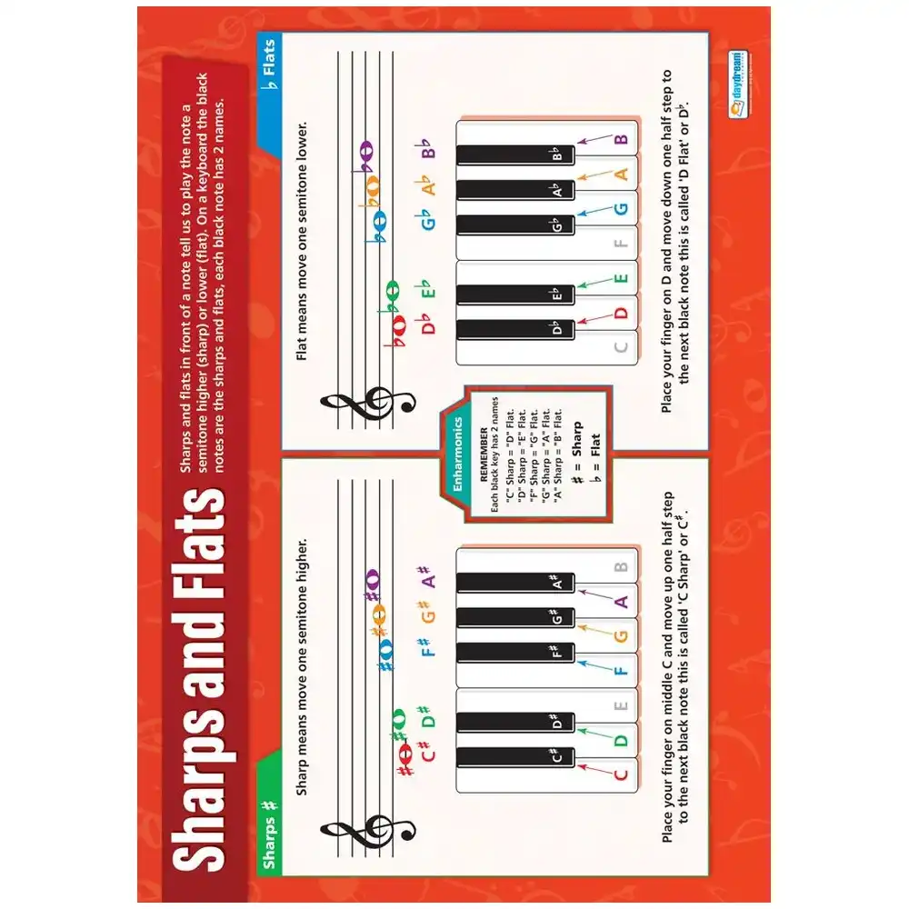 The Sharps and Flats Wall Chart is ideal for classroom walls and school hallways. The large A1 size (840mm x 594mm) makes the bright and informative chart highly readable from a distance, complementing every learning environment.