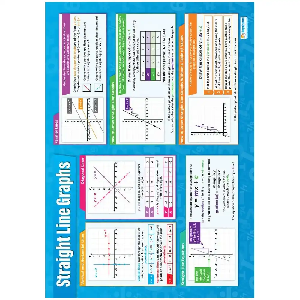 Our Straight Line Graphs Poster is part of our Maths range. The bright and instructional poster provides learners with a visual idea of how different Straight Line Graphs should be drawn out. These include vertical and horizontal lines, parallel lines and straight line equation. The poster also guides learners on how to draw straight line graphs and how to draw straight line graphs without a table of values.