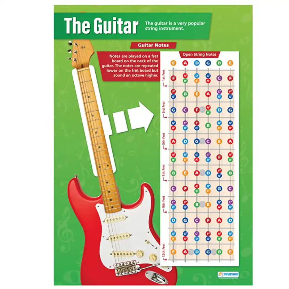 The Guitar poster is ideal for classroom walls and school hallways. The large A1 size makes the bright and informative chart highly readable from a distance, complementing every learning environment.