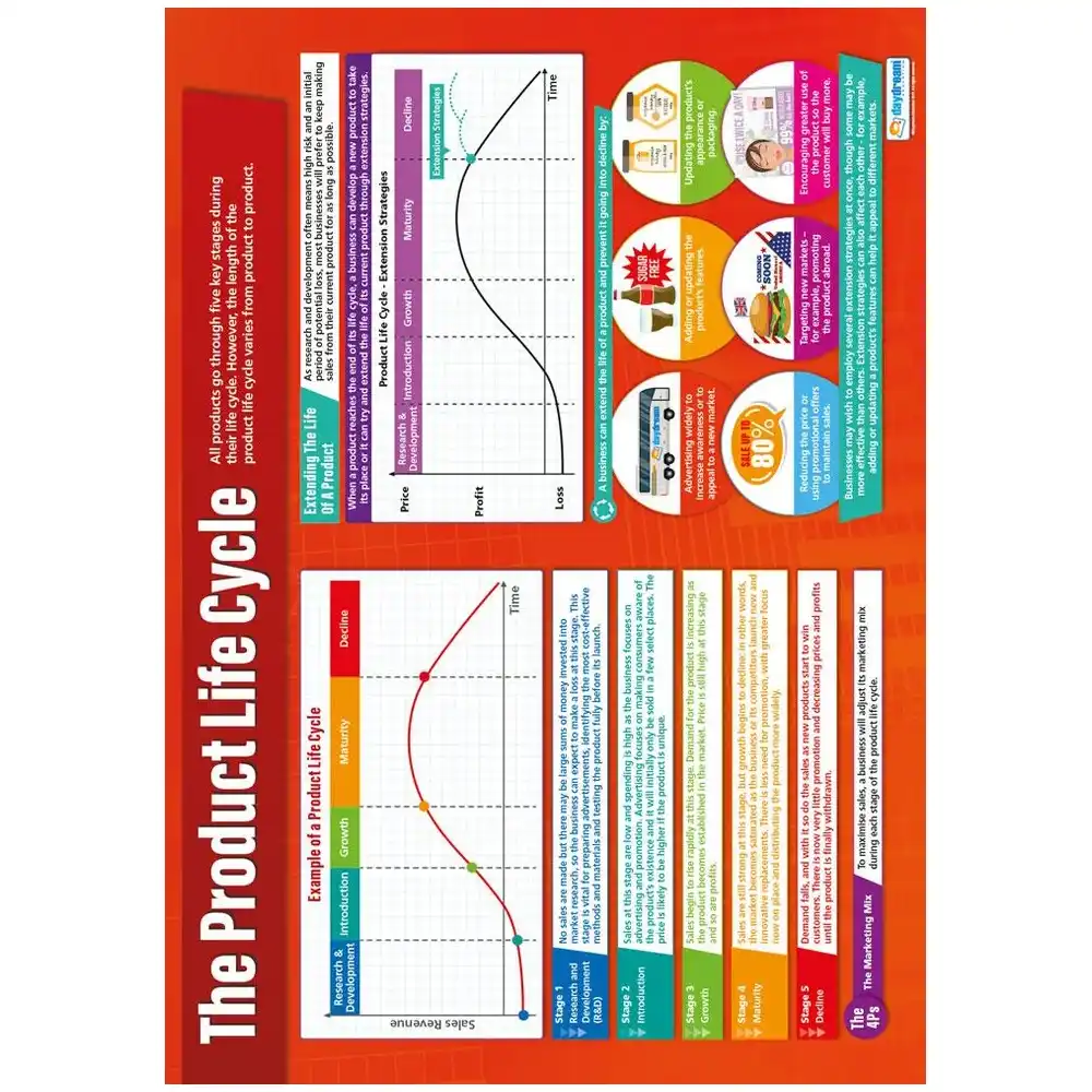 Give your pupils a clear understanding of the product life cycle with our colourful educational poster. With a clearly-labelled chart and a vibrant palette of colour, this resource summarises the five stages of the product life cycle in a visually-engaging and easy-to-follow format.