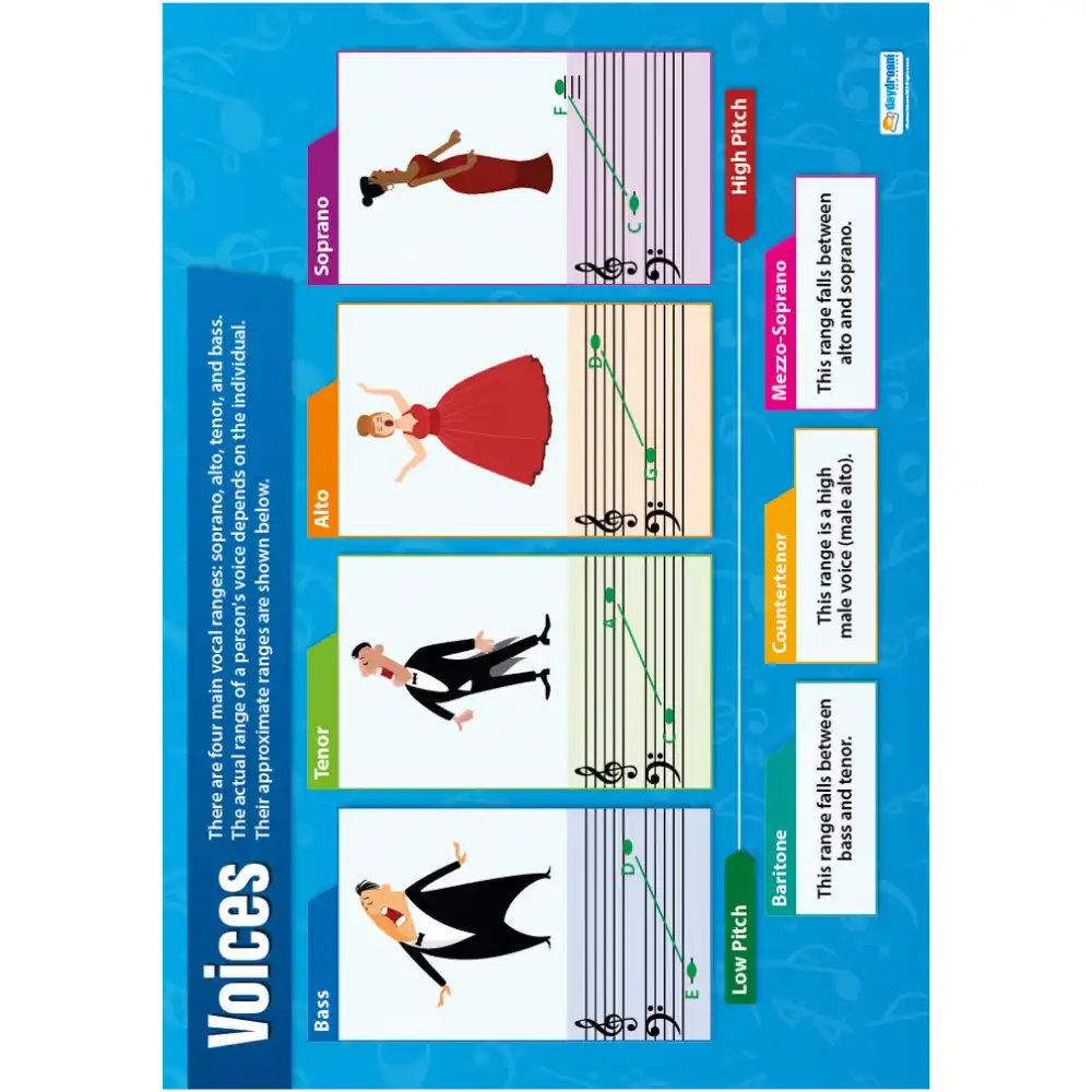 The Chords Wall Chart is ideal for classroom walls and school hallways. The large A1 size (840mm x 594mm) makes the bright and informative chart highly readable from a distance, complementing every learning environment.