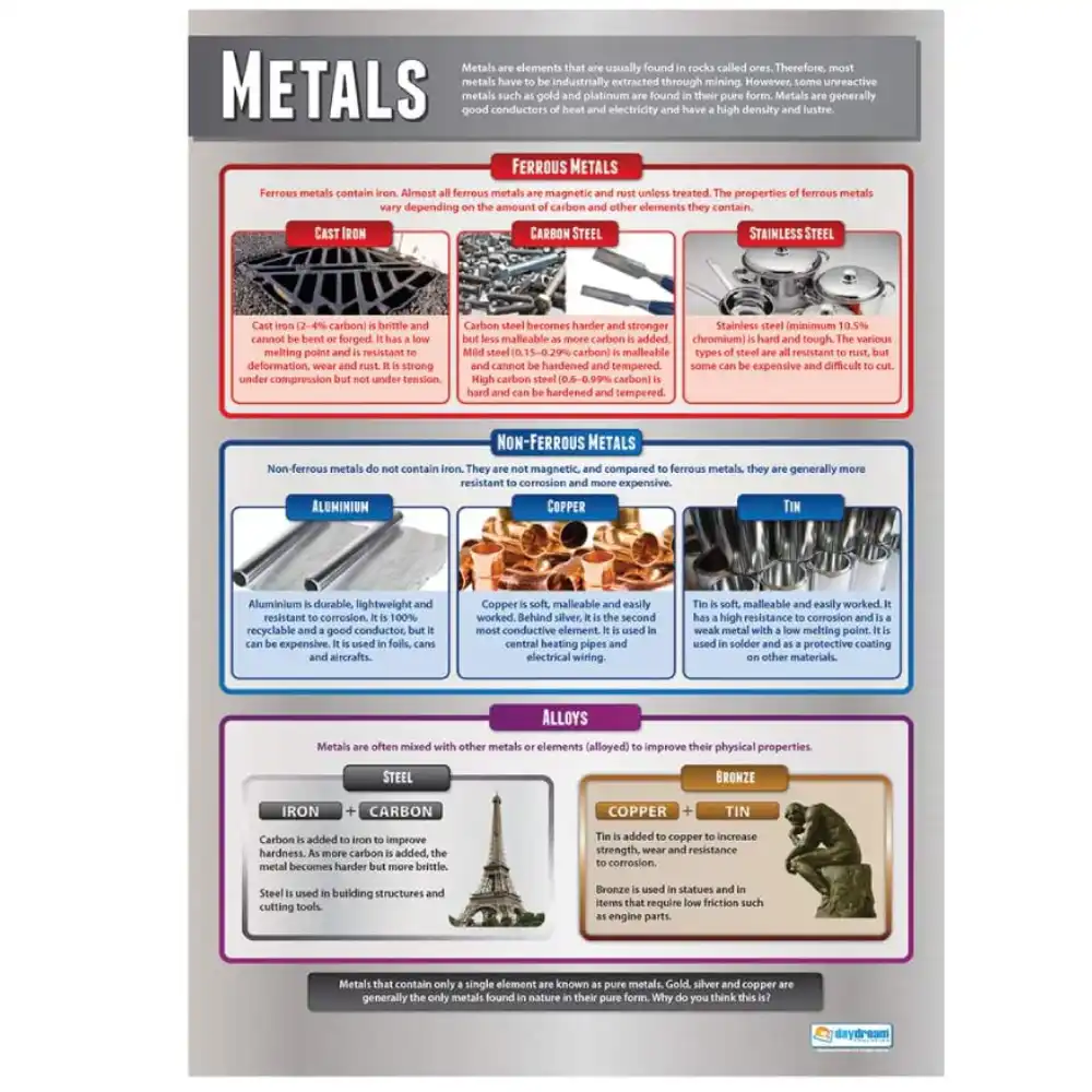 The Metal Wall Chart is ideal for classroom walls and school hallways. The large A1 size (840mm x 594mm) makes the bright and informative chart highly readable from a distance, complementing every learning environment.