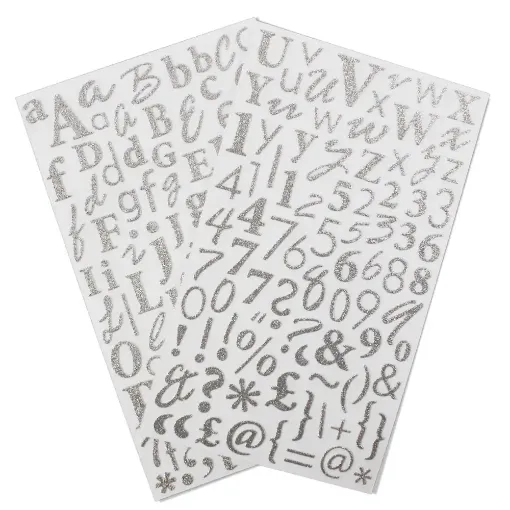 170 Glitter Stickers - Dovecraft glitter stickers packs contain a mixture of 170 intensely glittered letters, numbers and punctuation marks in 3 creative fonts, printed on a soft pliable fabric.