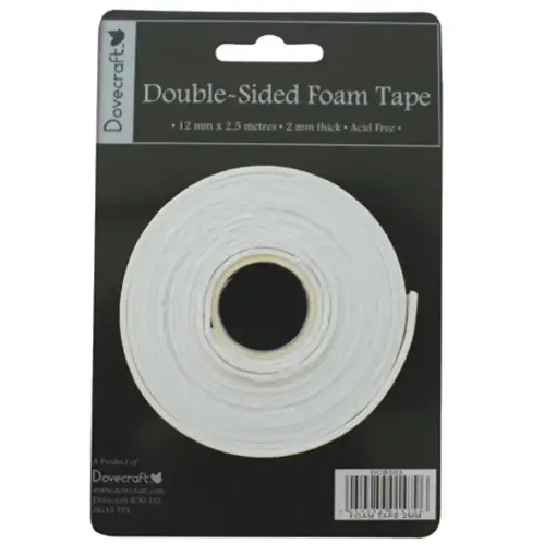 Dovecraft Foam Tape with a width of 2mm offers a quick and easy way to add dimension to your crafting projects. Its adhesive backing ensures a secure hold, making it ideal for cardmaking, scrapbooking, and various paper crafts.