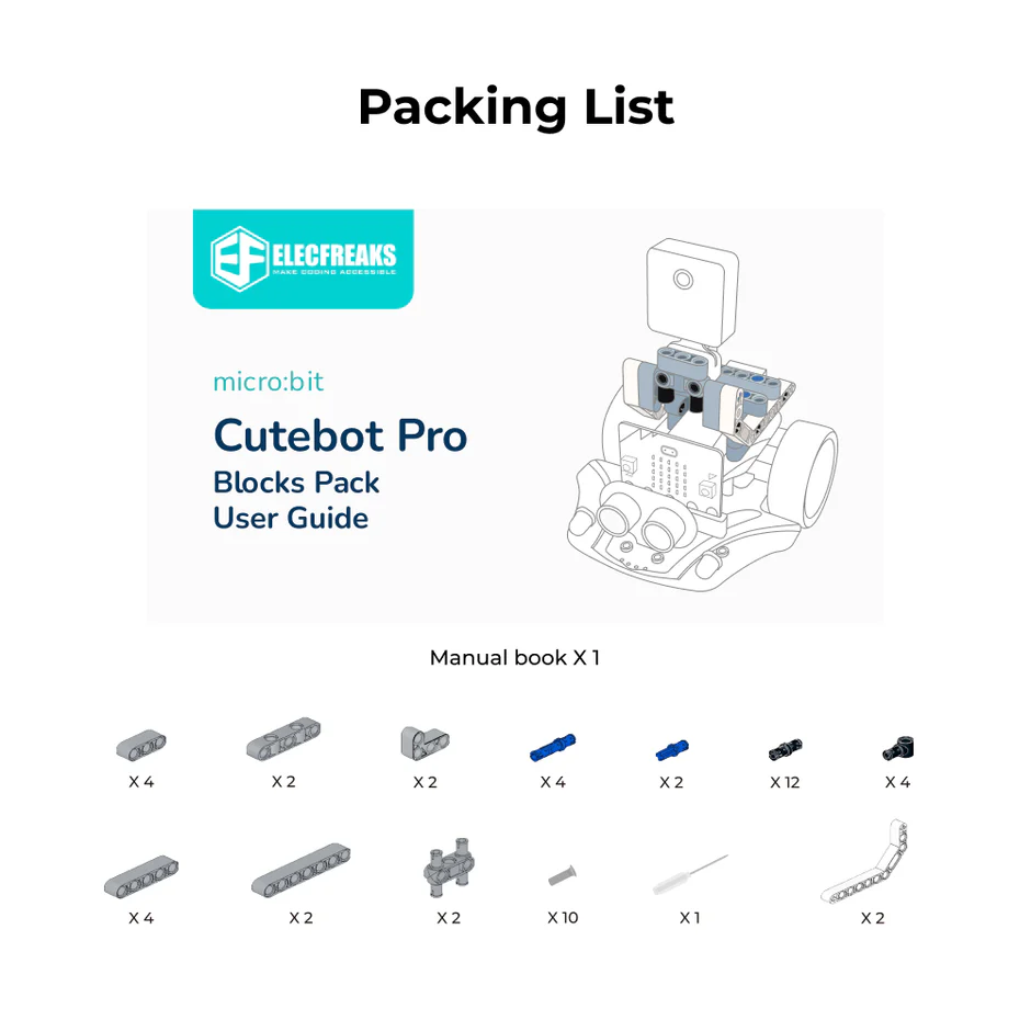 The Cutebot Pro includes additional motor ports and multiple mounting points for structural parts. This allows for the integration of extra components such as robotic arms or custom mechanical features—perfect for creating interactive or competitive robot builds.
