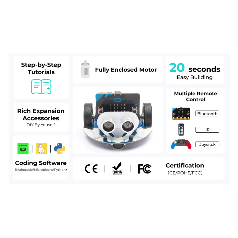 Note: BBC micro:bit is NOT included. This kit requires assembly.