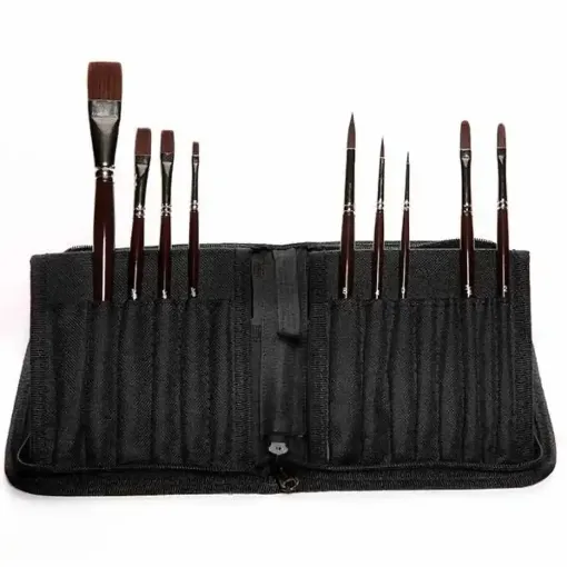 A range of acrylic brushes that are ideal for both the novice and more experienced artists. The wallet opens into a handy stand for easy access while painting, and folds flat again for convenient storage and transport.